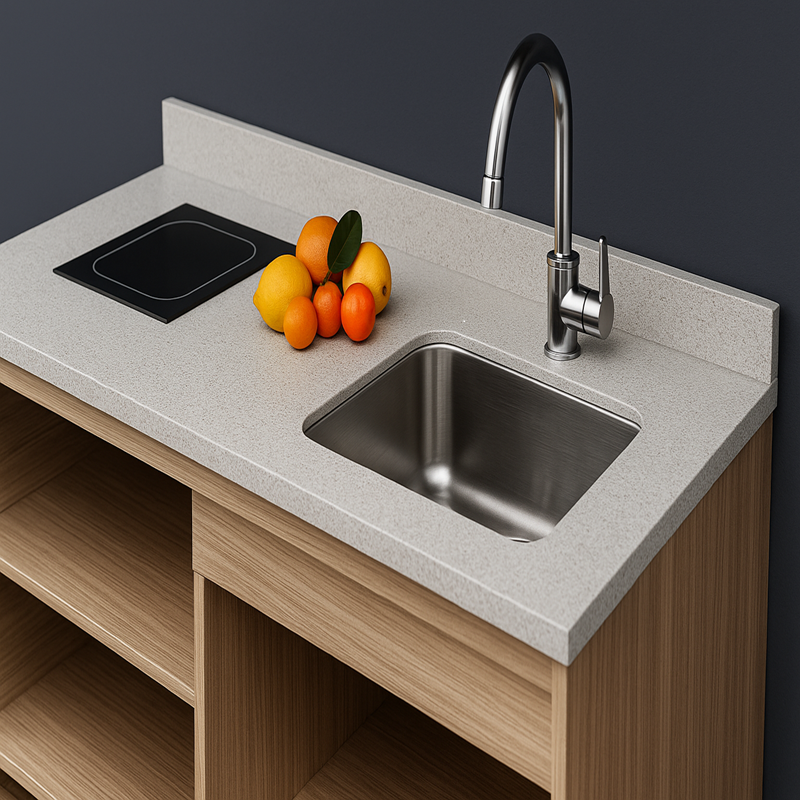 - Optional stainless steel sink with single-handle faucet and under-sink storage; can be included based on plumbing availability.