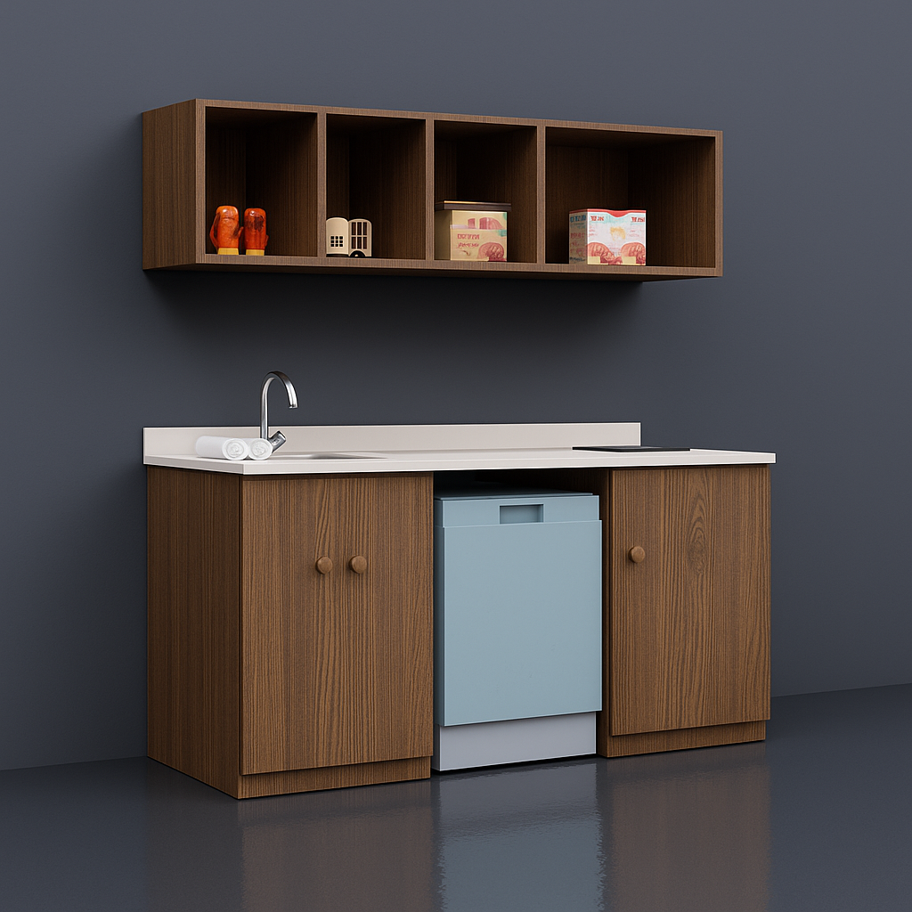 Featuring durable materials, appliance-ready compartments, and moisture-resistant finishes, our kitchen units for hotel rooms are designed to deliver functionality in compact spaces-ideal for extended stay hotels and suites. Each unit supports cooking, cleaning, and storage needs in a hospitality setting. Customizable to your layout and brand requirements, this hospitality-grade kitchenette combines convenience with long-term performance.