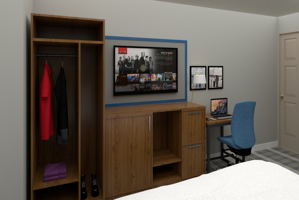 The hospitality case goods for an AmericInn hotel in the USA were designed, manufactured, and exported from our in-house manufacturing facility in India, which included metal bed frames, nightstands, drawers, upholstered headboards, work desks, wardrobes, vanities, and lounge seating. All the hospitality furniture for AmericInn hotels was delivered within project timelines, meeting the durability, quality, and design expectations required by the AmericInn FF&E specification guidelines.